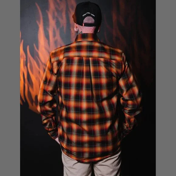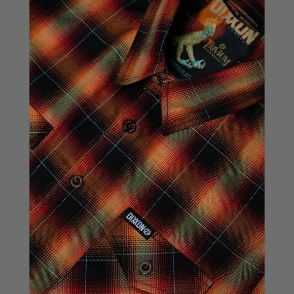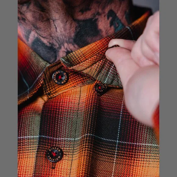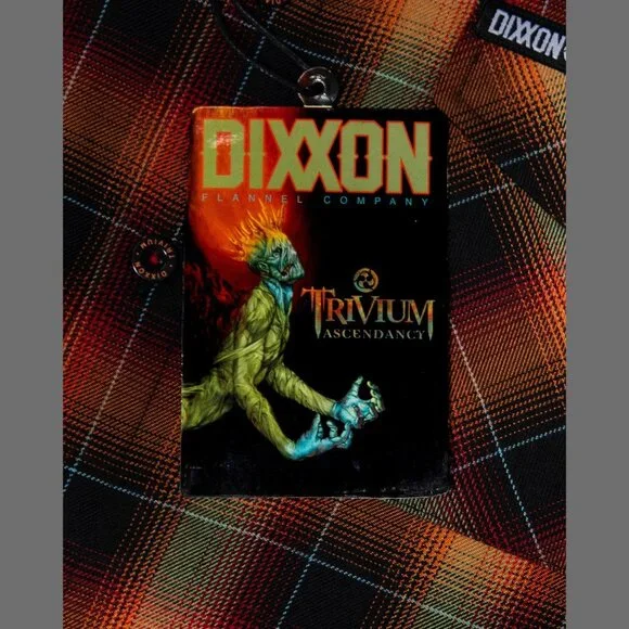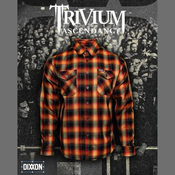 Trivium Ascendancy FlannelNew in bag with sticker / tagMens 3XLRuns bigRelaxed fitMeasurements: refer to size chart in photosCelebrating the 20th anniversary of the iconic album, the Trivium Ascendancy Flannel features an allover black, orange, red, green, and blue plaid pattern that offers an eye-catching design, while our signature D-Tech™ blend provides the comfort of soft to the touch flannel. Constructed to be breathable for the performance you demand, yet durable for the rugged lifestyle you live.Trivium x Dixxon collaborationMen’s black, orange, red, green, and blue plaid patterned flannel shirtFull button up closureButton sleeve cuffsDual button down flap chest pockets with utility slot for pens, sunglasses, etc.Black and white Dixxon/Trivium brand tag on the left chest pocketMachine wash cold with like colorsHang to dry or tumble dry on lowDo not ironSignature D-Tech™ polyester blend