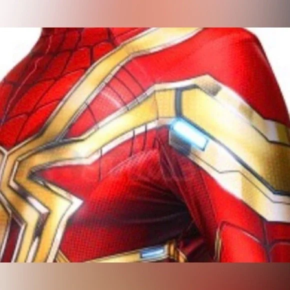 Kids/Teens Spiderman Iron Man Red Costume with head mask NEW from non-smoking, healthy home! Full feet & hands bodysuit; crotch opening, please study my measurements for your best fit! No Size tags; appears to be a Mens XS-Kids Med?***MUST (please!) Study my Measurements unstretched:Chest-30” around.Waist-26” around.Length-22” from crotch to ankle.Arms-13” underarm seam to wrist. Torso-22” back of neck to crotch.