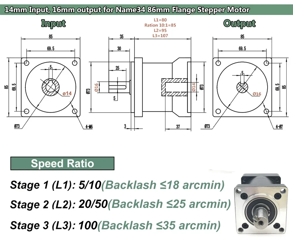 Backlash Precision (arcmin) | ≦18 | ≦25 | ≦35 |
